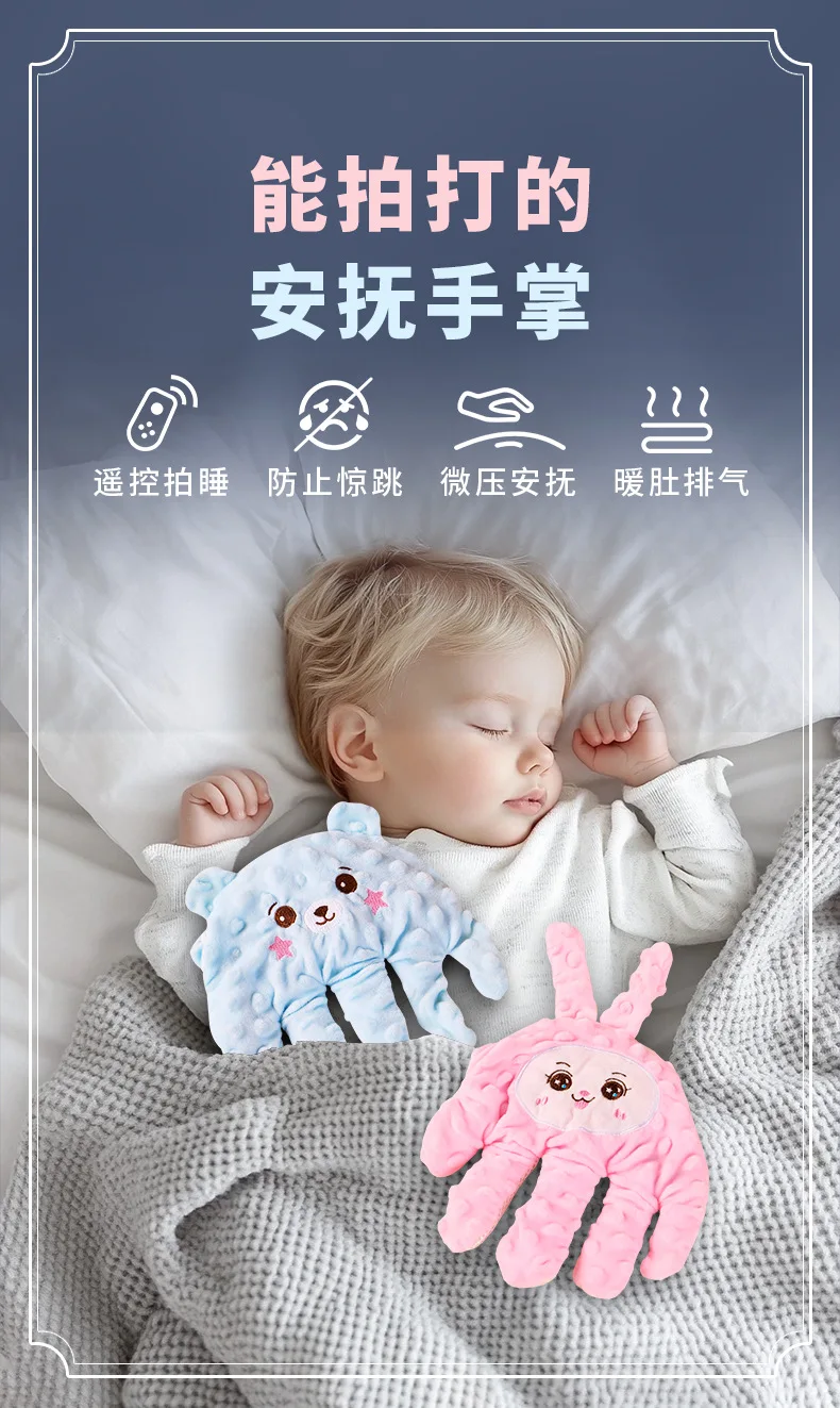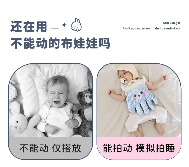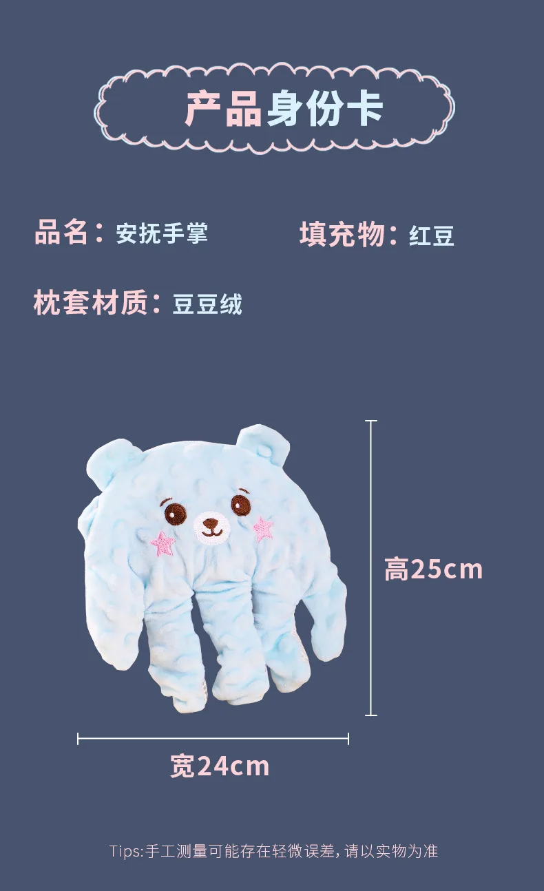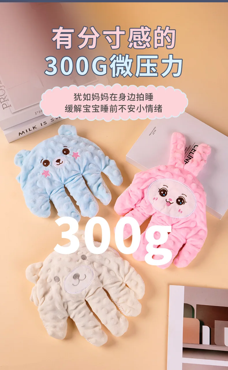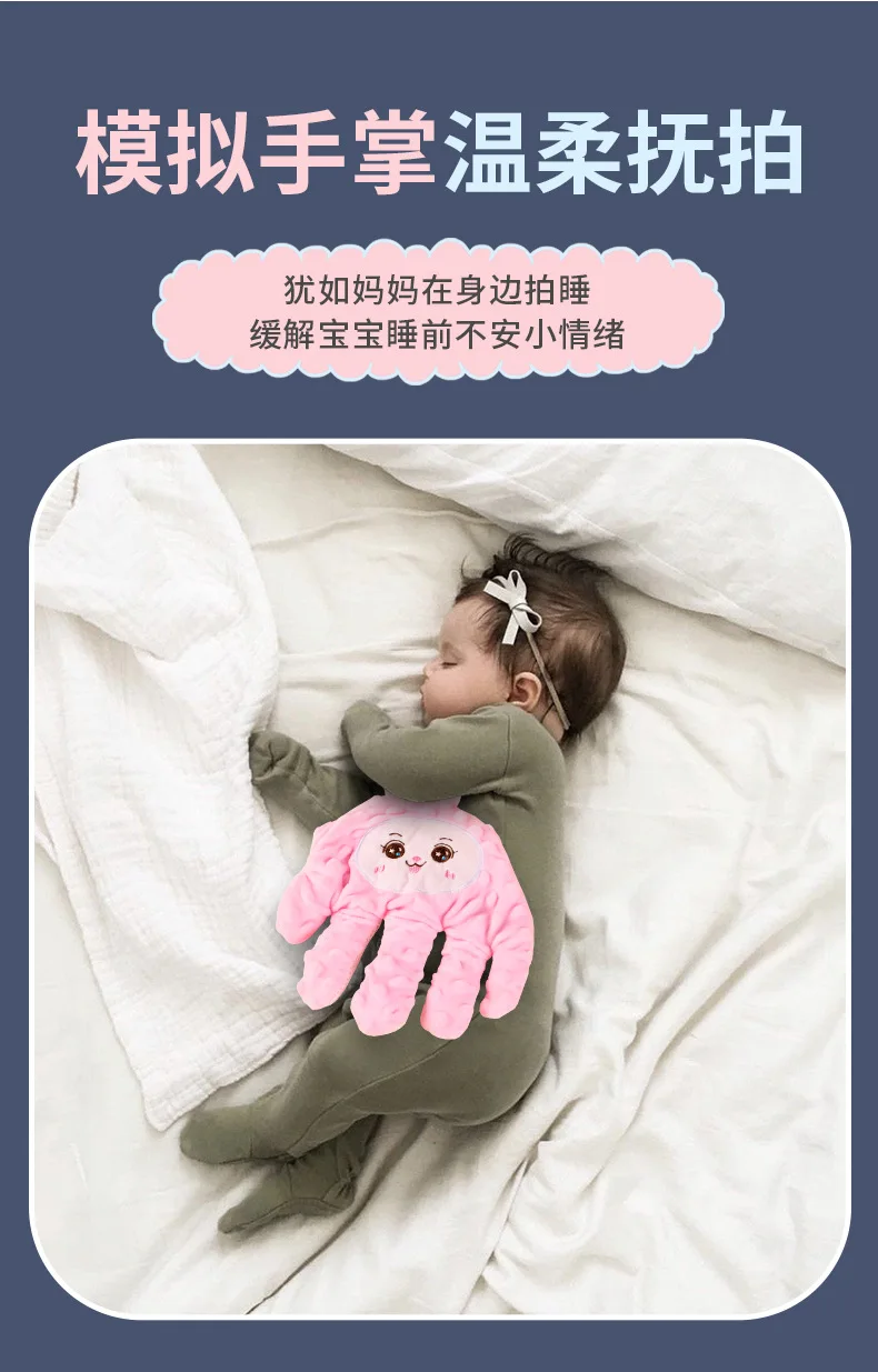 Design ergonômico:Nossa almofada de dormir para bebês apresenta um design inovador em formato de palma que imita a curvatura natural da mão de uma mãe.Este design proporciona um toque reconfortante e familiar aos recém-nascidos, reduzindo os surtos e promovendo uma sensação de segurança ao longo da noite.